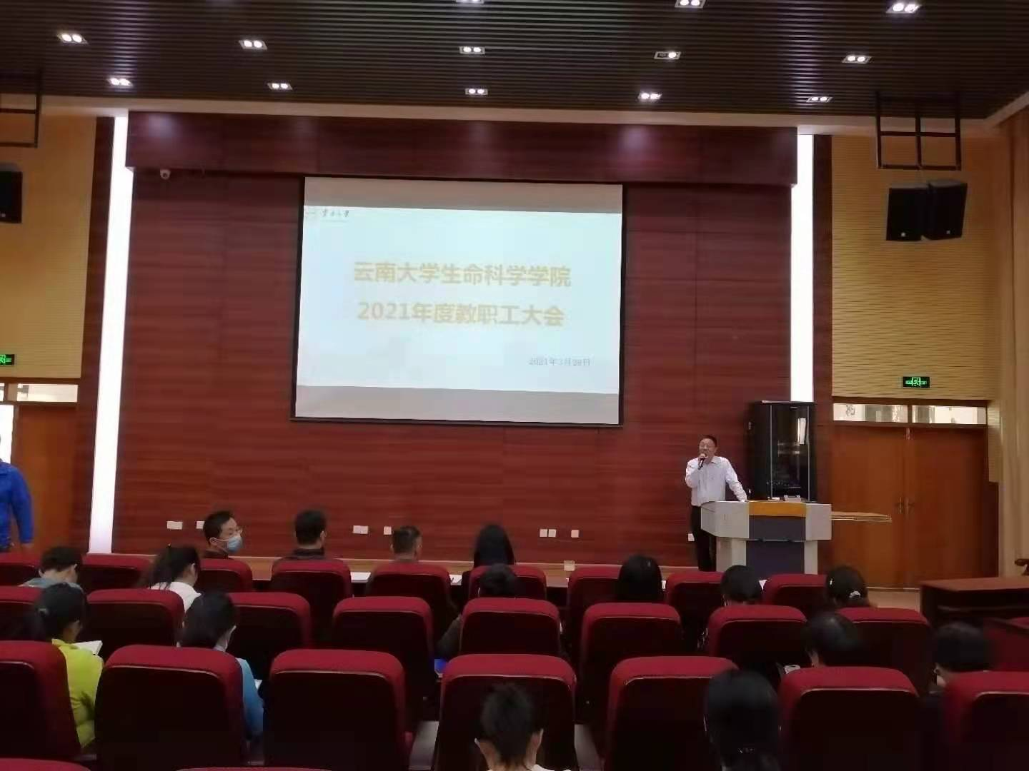 杨崇林院长传达565net必赢客户端学校总结2020年工作和2021年工作部署。他在安排今年工作时指出,全面贯彻实施565net必赢客户端“双一流”大学建设方案,在师资队伍建设、学科建设、人才培养、科学研究、管理体制机制等方面狠下功夫,不断提升办学治院能力,围绕国家和云南省经济社会发展的重大战略需求,聚焦于现代生命科学领域的重要科学问题,开展具有鲜明学科特色、国际水准、国内一流的现代生命科学研究和人才培养,提出了学院“十四五”规划建设目标及建设任务并做了工作部署。杨院长指出,只有大家凝心聚力,力争上进,才能使学院各项事业快速发展。他希望全院教职工不忘初心,继续前进,为建设一流565net必赢客户端不懈奋斗。