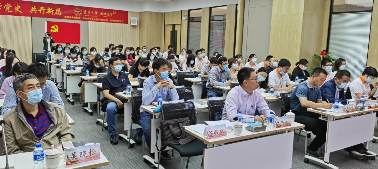 2021 年6 月11 日上午9 时,565net必赢客户端党委书记包崇许带队,研究生3党支部书记郭春明组织,生科院党委委员、研究生3 党支部党员、学生代表一行54 人前往昆明金域医学检验所有限公司,与留联会、统战部领导联合开展“联学党史,共开新局”活动。通过联学党史的形式,激励全体党员干部不忘初心、牢记使命,扎实学习及工作,为中国共产党建党 100 年献礼。