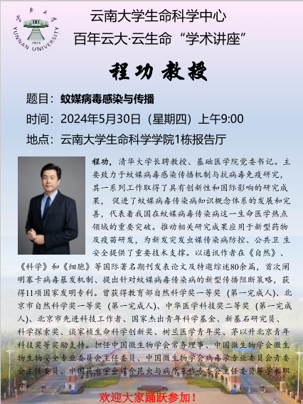 栏目导航 导航 栏目导航 首页 学院概况 学院简介 党政工团 行政办公 新闻通知 学院新闻 通知公告 师资队伍 细胞生物学 生物化学与分子生物学 遗传学 微生物学 生物信息学 进化生物学 当前位置: 首页>>讲座信息>>学术讲座>>正文 蚊媒病毒感染与传播 发布时间: 2024年05月28日 10:52 阅读次数: